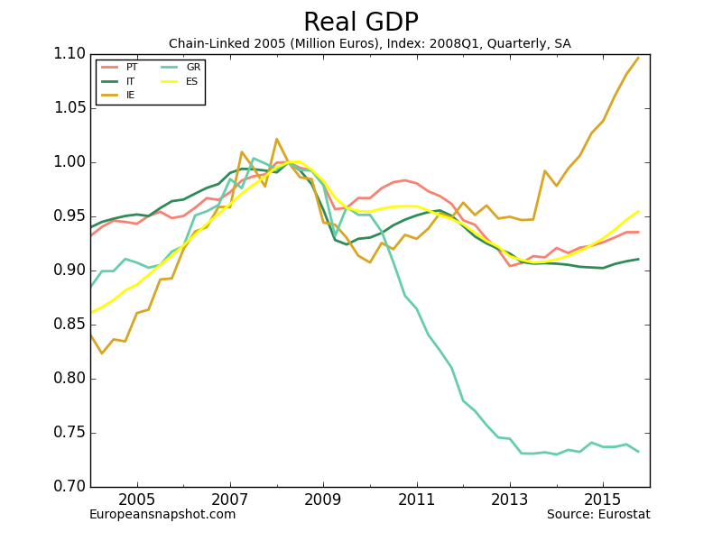 The so-called PIIGS-the periphery economies-are a different story but also an improving one. Ireland, Spain, and possibly Portugal are showing signs of growth.